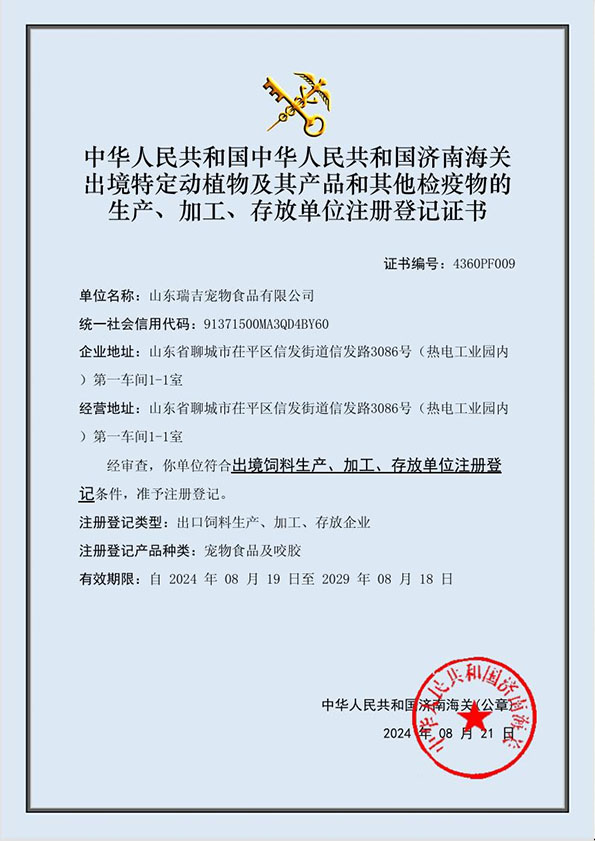 海关出境注册登记证书
